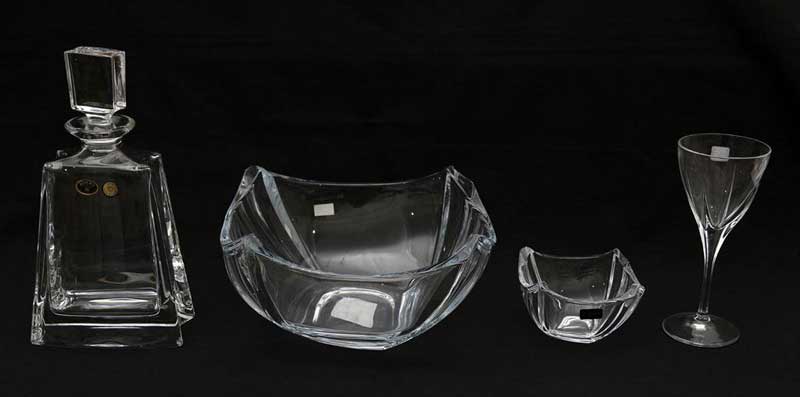 Πλήρες Σετ κουμπάρου κρυστάλλινο το οποίο περιλαμβάνει καράφα, ποτήρι κρασιού, μπωλ μεγάλο για τα κουφέτα, μελιέρα, δίσκο ανοξείδωτο και στέφανα επάργυρα με κωδικό 4633 σε κουτί πολυτελείας.