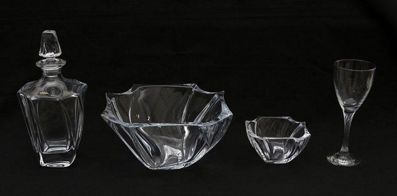 Πλήρες Σετ κουμπάρου κρυστάλλινο το οποίο περιλαμβάνει καράφα, ποτήρι κρασιού, μπωλ μεγάλο για τα κουφέτα, μελιέρα, δίσκο ανοξείδωτο και στέφανα ασημένια με κωδικό 126 σε κουτί πολυτελείας.