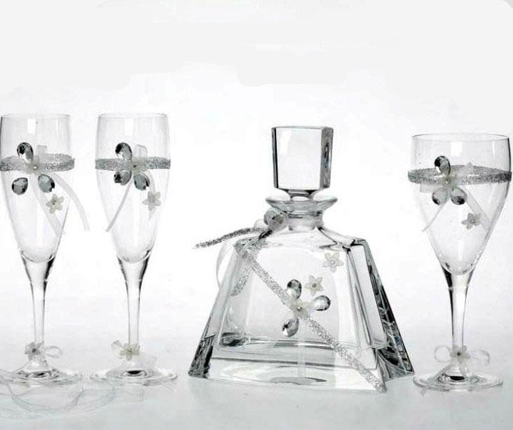 Σετ Καράφα ποτήρι στολισμένα σε αποχρώσεις του ασημί. Η τιμή περιλαμβάνει καράφα και ποτήρι της επιλογής σας. Μπορείτε να επιλέξετε ανάμεσα σε κρασιού και σαμπάνιας.