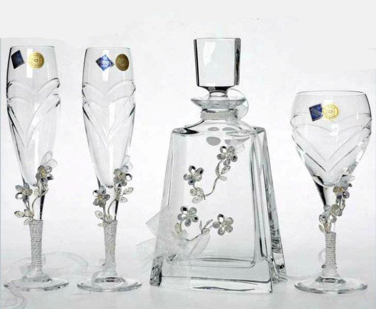 Σετ Καράφα ποτήρι στολισμένα σε αποχρώσεις του λευκού. Η τιμή περιλαμβάνει καράφα και ποτήρι της επιλογής σας. Μπορείτε να επιλέξετε ανάμεσα σε κρασιού και σαμπάνιας.