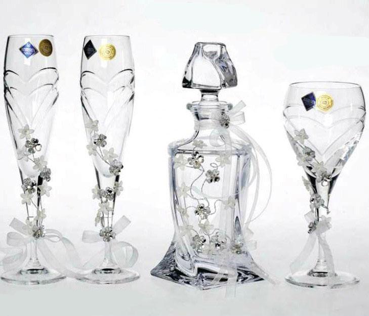 Σετ Καράφα ποτήρι στολισμένα σε αποχρώσεις του λευκού. Η τιμή περιλαμβάνει καράφα και ποτήρι της επιλογής σας. Μπορείτε να επιλέξετε ανάμεσα σε κρασιού και σαμπάνιας.