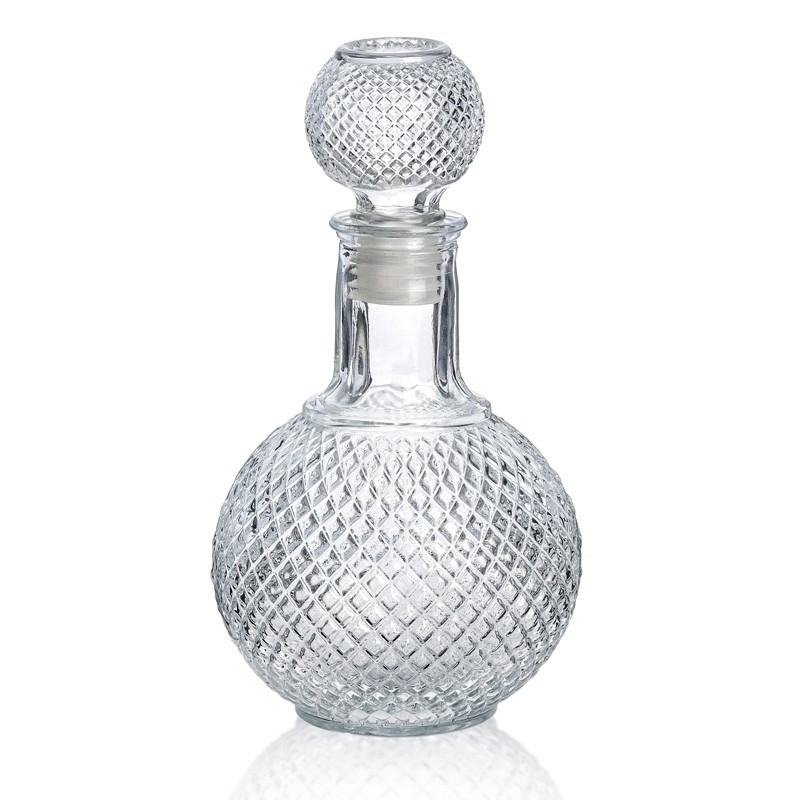 Γυάλινη στρογγυλή καράφα με γυάλινο καπάκι.
