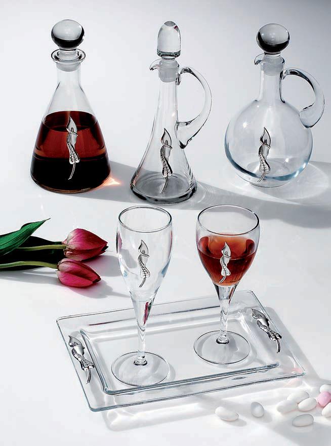 Σετ Κουμπάρου luxury με σχέδιο κρίνος. Το σετ περιλαμβάνει δίσκο κρυστάλλινο με δυο ποτήρια και καράφα. Μπορείτε να επιλέξετε ανάμεσα σε δυο διαφορετκά είδη ποτηριού καθώς και κανάτα της αρεσκείας σας.