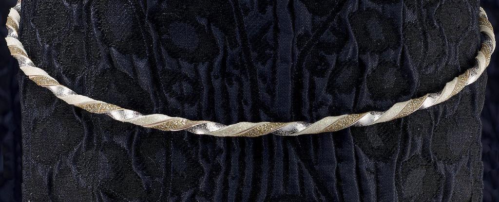 Στέφανα Γάμου ασημένια με βέργα στριφτή με ιριζέ και χρυσό δέρμα. Η τιμή αφορά τα στέφανα, την στεφανοθήκη και 2 μπουτουνιέρες.