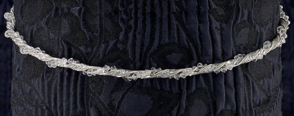 Στέφανα Γάμου ασημένια με βέργα στριφτή, ασημί δέρμα και crystal swarovski. Η τιμή αφορά τα στέφανα, την στεφανοθήκη και 2 μπουτουνιέρες.