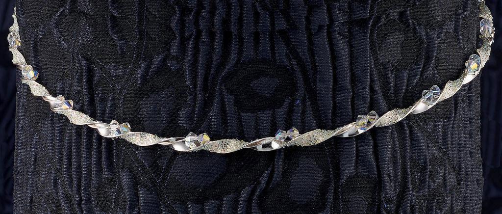 Στέφανα Γάμου ασημένια με βέργα στριφτή, crystal fabric και ιριζέ swarovski. Η τιμή αφορά τα στέφανα, την στεφανοθήκη και 2 μπουτουνιέρες.