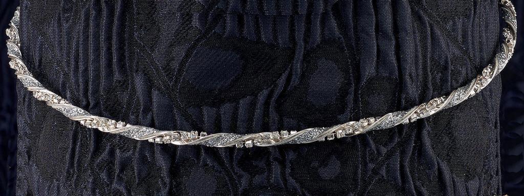 Στέφανα Γάμου ασημένια με βέργα στριφτή, ασημί δέρμα με strass swarovski. Η τιμή αφορά τα στέφανα, την στεφανοθήκη και 2 μπουτουνιέρες.