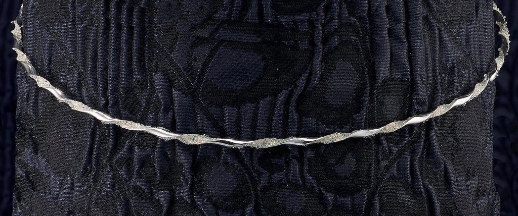 Στέφανα Γάμου ασημένια με βέργα στριφτή και crystal fabric. Η τιμή αφορά τα στέφανα, την στεφανοθήκη και 2 μπουτουνιέρες.