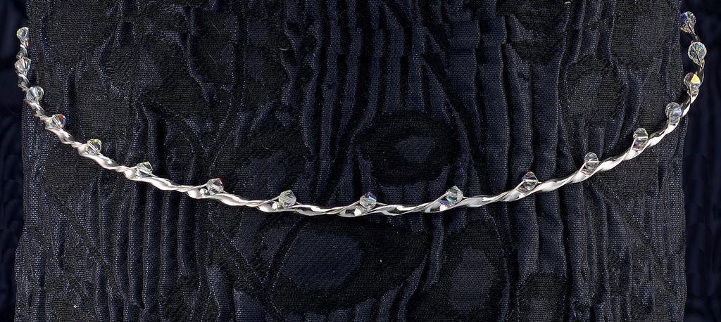 Στέφανα Γάμου ασημένια με βέργα στριφτή και ιριζέ swarovski. Η τιμή αφορά τα στέφανα, την στεφανοθήκη και 2 μπουτουνιέρες.