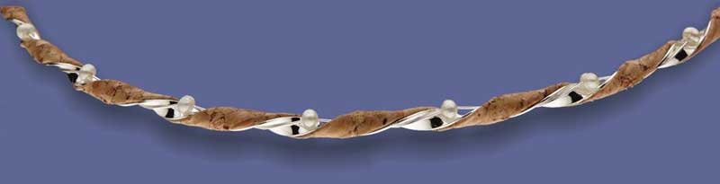 Στέφανα Γάμου ασημένια με φελλό και ασημί στριφτή βέργα και φυσικό μαργαριτάρι. Η τιμή αφορά τα στέφανα, την στεφανοθήκη και 2 μπουτουνιέρες.