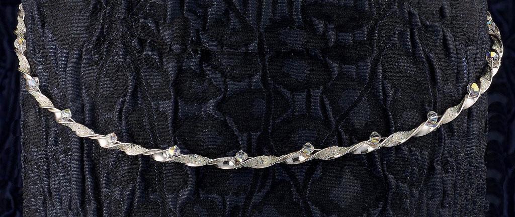 Στέφανα Γάμου επάργυρα στριφτά με Crystal Fabric και κρυσταλλάκια ιριζέ Swarovski. Η τιμή αφορά τα στέφανα, την στεφανοθήκη και 2 μπουτουνιέρες.