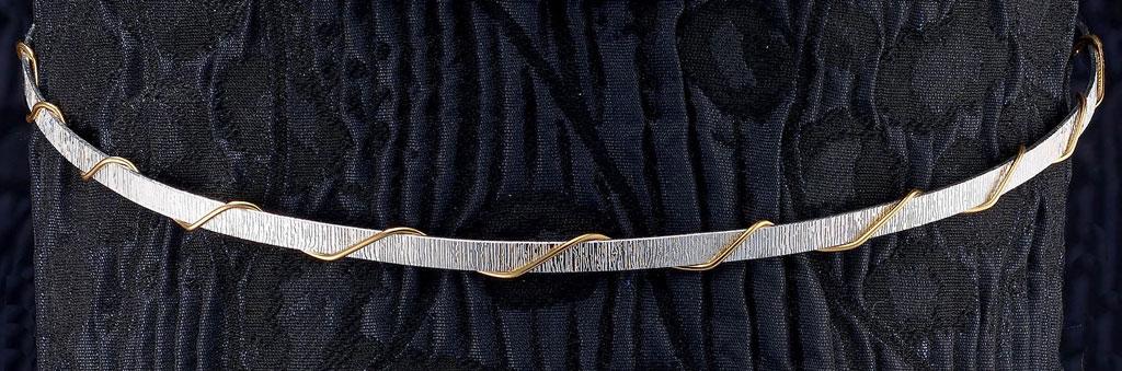 Στέφανα Γάμου επάργυρα με βέργα σφυρίλατη και σύρμα επίχρυσο. Η τιμή αφορά τα στέφανα, την στεφανοθήκη και 2 μπουτουνιέρες.