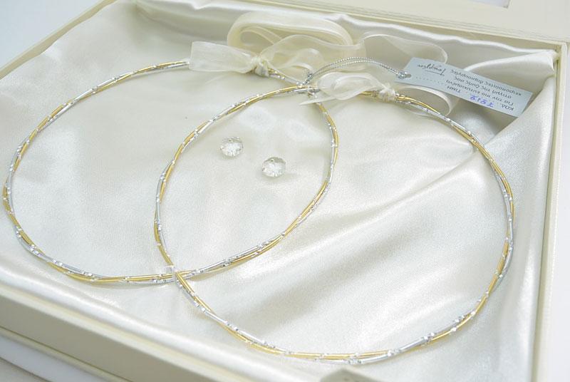 Στέφανα Γάμου επάργυρα με βέργα διπλή σφυρίλατη και λεπτομέρεια επίχρυση. Η τιμή αφορά τα στέφανα, την στεφανοθήκη και 2 μπουτουνιέρες.