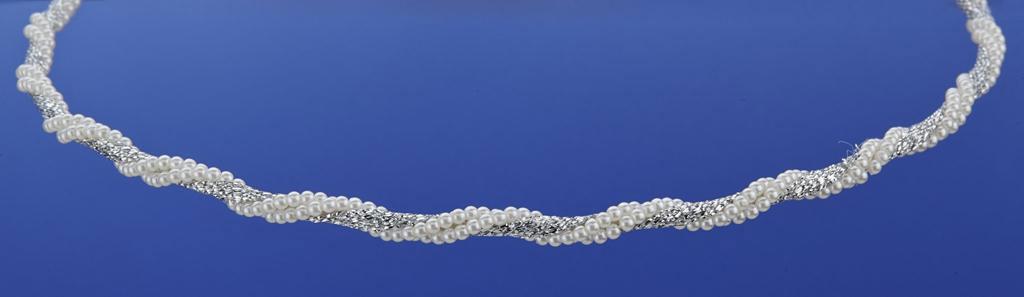Στέφανα Γάμου στριφτά με ασημί κορδόνι και πέρλες. Η τιμή αφορά τα στέφανα, την στεφανοθήκη και 2 μπουτουνιέρες.