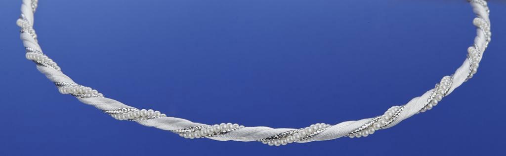 Στέφανα Γάμου στριφτά με ασημί και λευκό κορδόνι και πέρλες. Η τιμή αφορά τα στέφανα, την στεφανοθήκη και 2 μπουτουνιέρες.