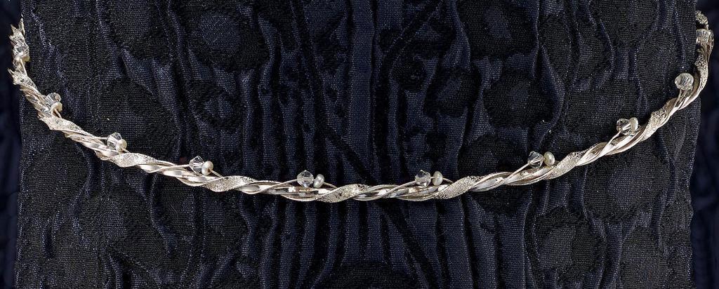 Στέφανα Γάμου ασημένια με βέργα στριφτή, διαμανταριστή με φυσικό μαργαριτάρι και crystal swarovski. Η τιμή αφορά τα στέφανα, την στεφανοθήκη και 2 μπουτουνιέρες.