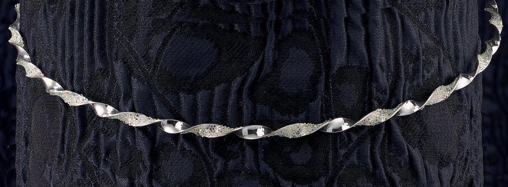 Στέφανα Γάμου ασημένια με βέργα στριφτή και crystal fabric. Η τιμή αφορά τα στέφανα, την στεφανοθήκη και 2 μπουτουνιέρες.