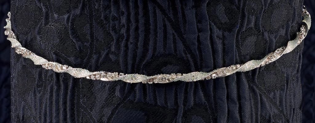 Στέφανα Γάμου ασημένια με βέργα στριφτή διαμανταριστή και swarovski. Η τιμή αφορά τα στέφανα, την στεφανοθήκη και 2 μπουτουνιέρες.