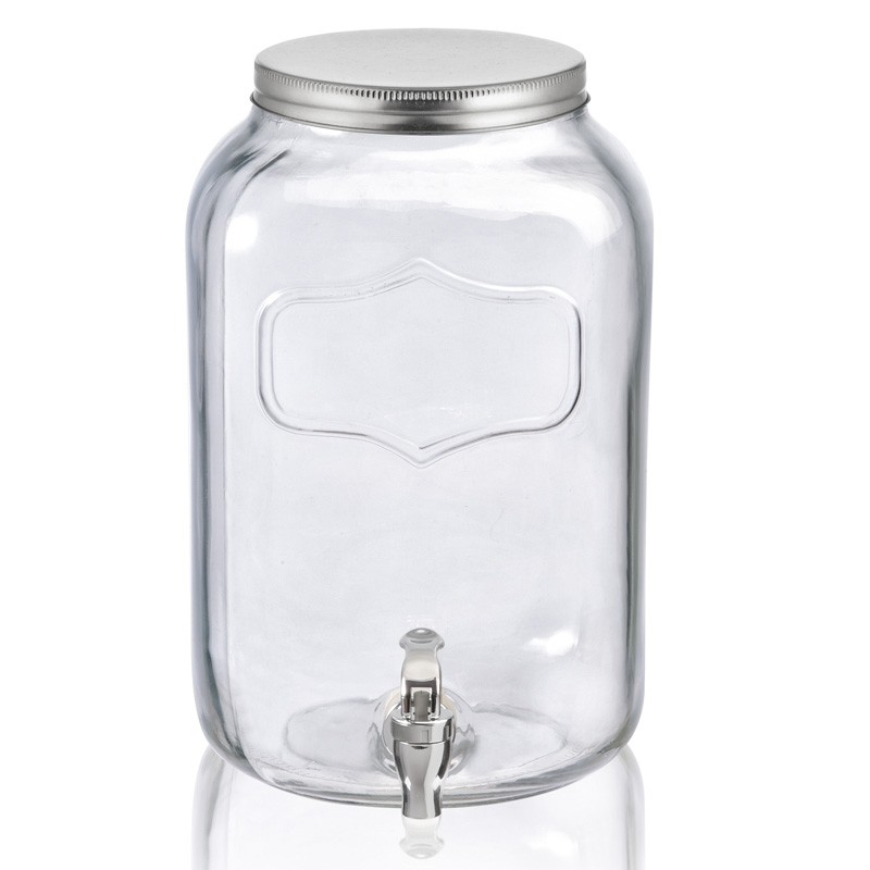 Γυάλινο τετράγωνο βάζο με μεταλλικό ασημί καπάκι και βρυσάκι. Ιδανικό για στολισμούς σε Candy Bar.