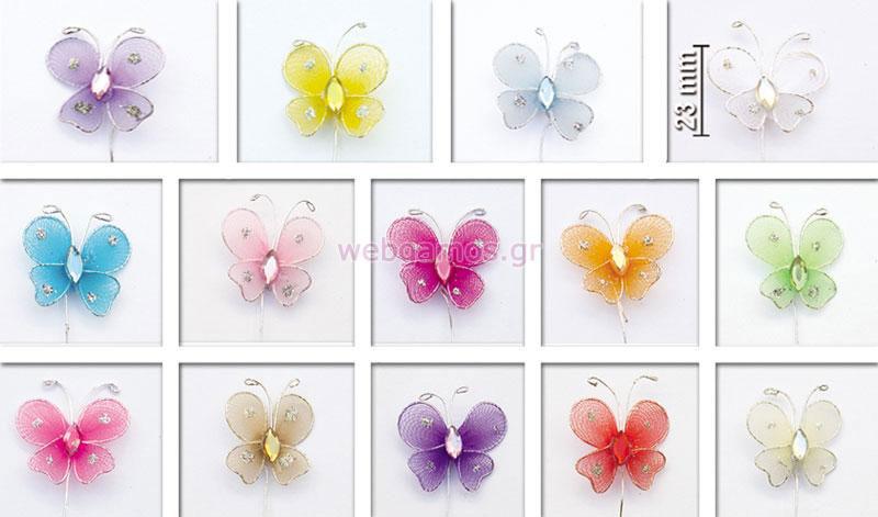 Διακοσμητικές Πεταλούδες με συρματάκι σε διάφορα χρώματα και διαστάσεις. Η τιμή αφορά την διάσταση 2,3 εκ.