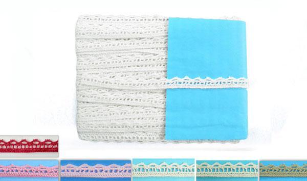 Δαντέλα Βαμβακερή σε 5 αποχρώσεις. Διάσταση 1.3 εκ x 20 μέτρα.