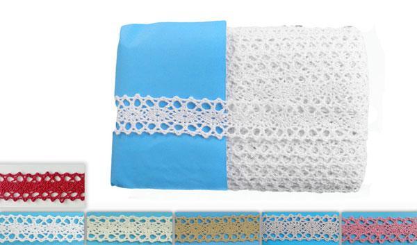 Δαντέλα Βαμβακερή σε 5 αποχρώσεις. Διάσταση 2 εκ x 20 μέτρα.