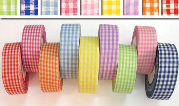 Κορδέλα Καρό 3,8 cm των 50 μέτρων σε διάφορα χρώματα.