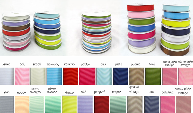 Κορδέλα Γκρο σε διάφορες αποχρώσεις με διάσταση 0.6 εκ x 24 μέτρα.