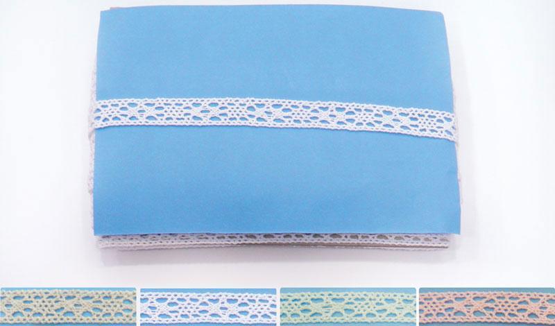 Δαντέλα Βαμβακερή σε διάφορες αποχρώσεις με διάσταση 1.2 εκ x 18.5 μέτρα.