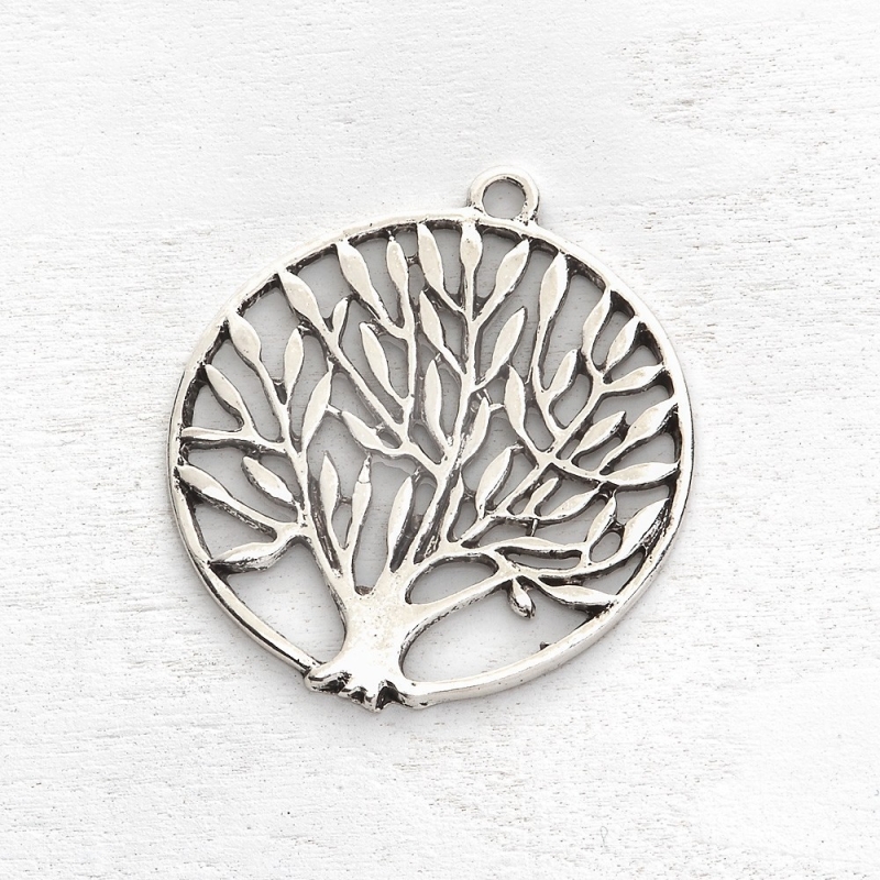 Μεταλλικό κρεμαστό διακοσμητικό στρογγυλό δέντρο σε χρώμα ασημί. Κατάλληλο για διακοσμήσεις και χειροποίητες κατασκευές. Η συσκευασία περιέχει 10 τεμάχια.