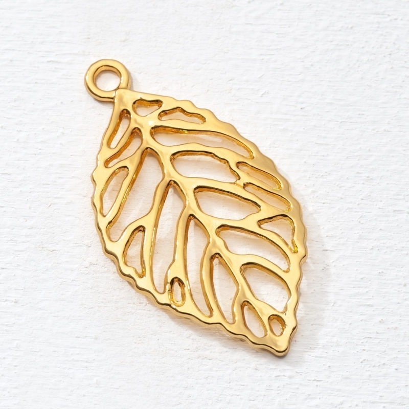 Μεταλλικό κρεμαστό διακοσμητικό φύλλο σε χρώμα χρυσό. Κατάλληλο για διακοσμήσεις και χειροποίητες κατασκευές. Η συσκευασία περιέχει 10 τεμάχια.