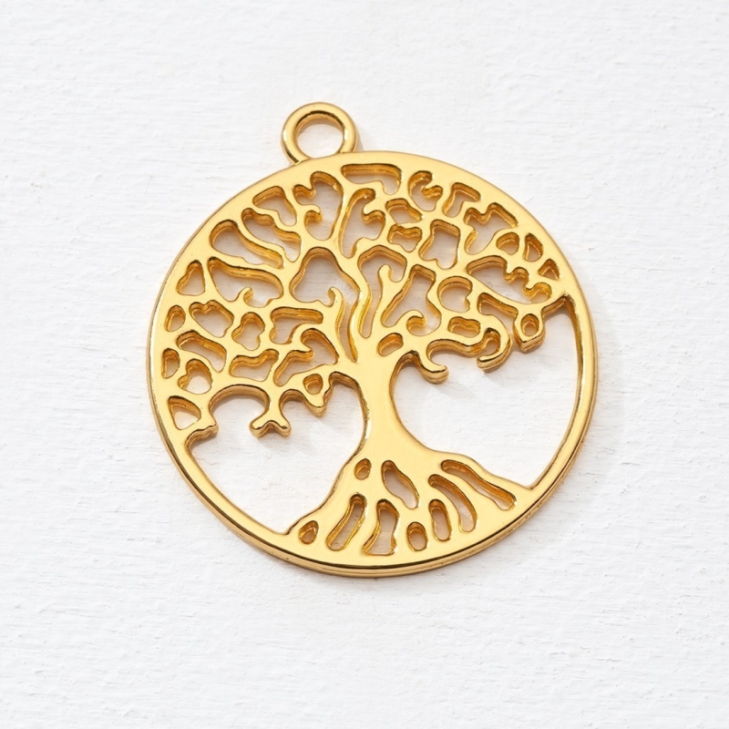 Μεταλλικό κρεμαστό διακοσμητικό στρογγυλό δέντρο σε χρώμα χρυσό. Κατάλληλο για διακοσμήσεις και χειροποίητες κατασκευές. Η συσκευασία περιέχει 10 τεμάχια.