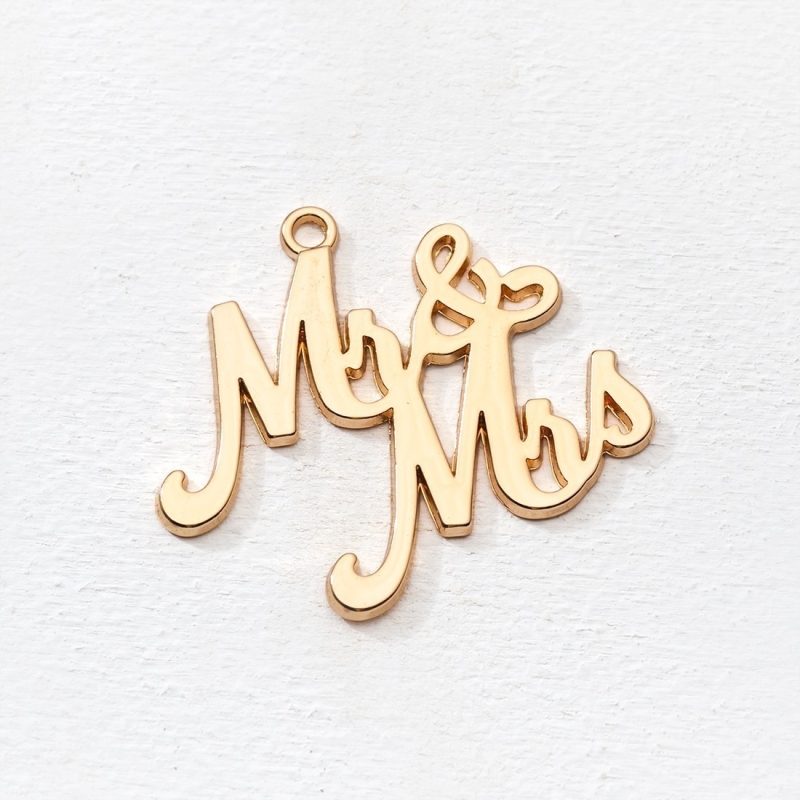 Μεταλλικό κρεμαστό διακοσμητικό Mr & Mrs σε χρυσό χρώμα. Κατάλληλο για διακοσμήσεις και χειροποίητες κατασκευές. Η συσκευασία περιέχει 10 τεμάχια.