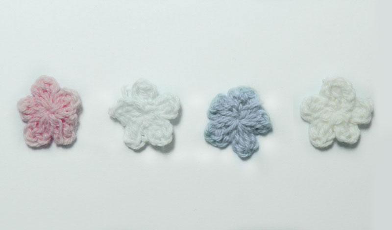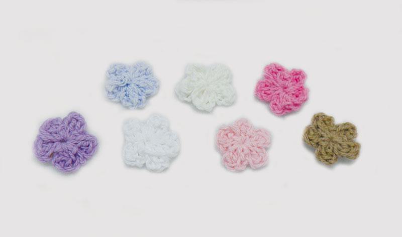 Πλεκτό Λουλούδι σε 4 αποχρώσεις με διάσταση 1.8 εκ.  Ελάχιστη ποσότητα 100 τεμάχια.