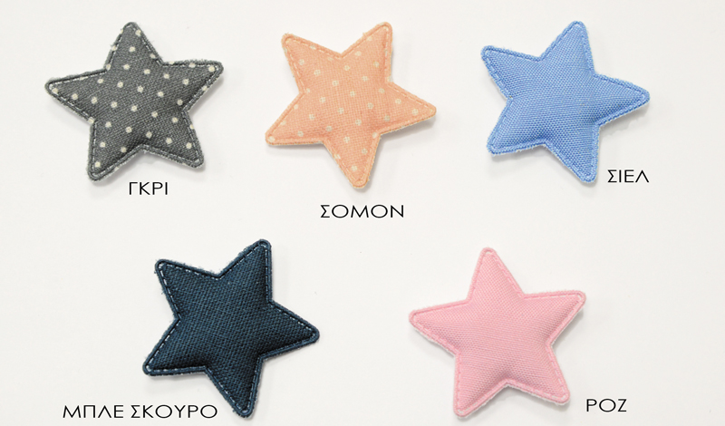 Αστέρι Πάνινο σε διάφορες αποχρώσεις. Διάσταση 4.5 εκ. Η τιμή αφορά το τεμάχιο. Η συσκευασία περιλαμβάνει 25 τεμάχια.