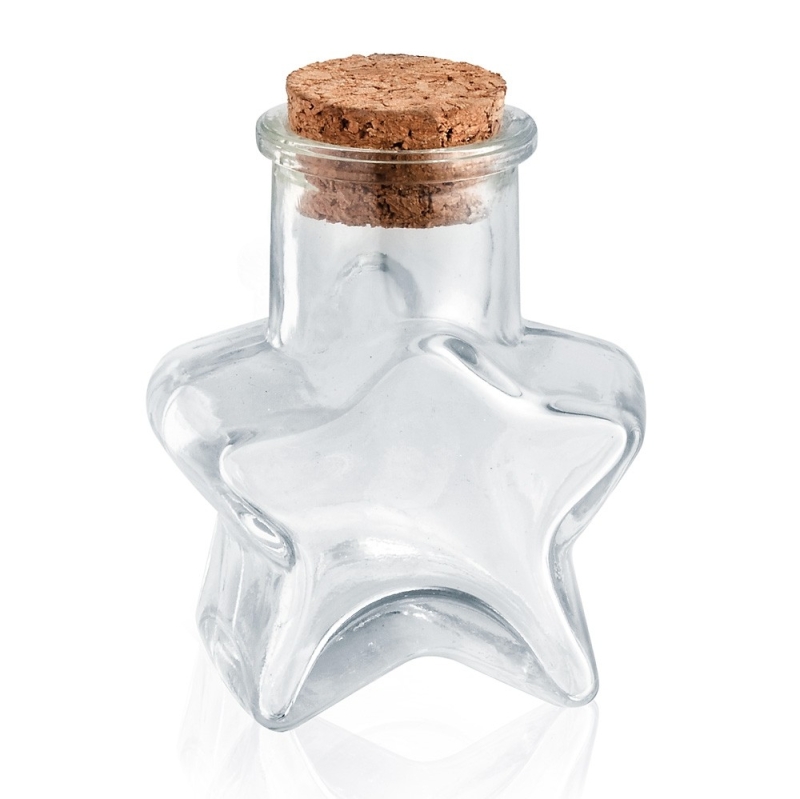 Γυάλινο διάφανο χαμηλό βαζάκι 4x3.5 cm σε σχήμα αστέρι με κούμπωμα από φελλό και χωρητικότητα 50ml.