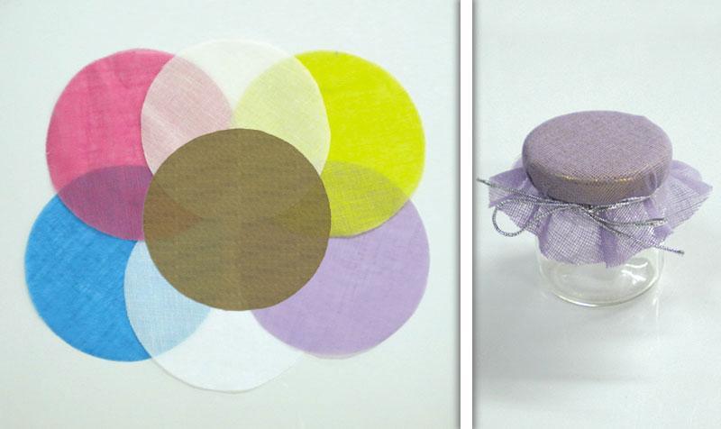 Πανάκι Γάζα σε διάφορες αποχρώσεις και διάσταση 9,5 εκ για στολισμό σε βαζάκια με γλυκό. Συσκευασία 100 τεμαχίων.