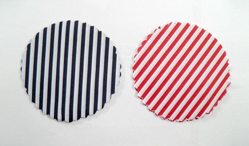 Πανάκι με ρίγες 9.5 εκ για στολισμό σε βαζάκια με γλυκό σε 2 αποχρώσεις. Συσκευασία 100 τεμαχίων.