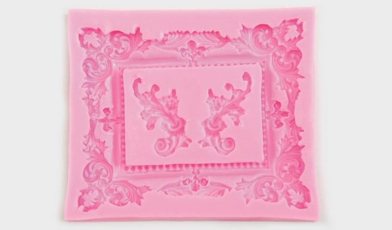 Καλούπι σιλικόνης κορνίζα με διαστάσεις 10.8cm x 9.3cm.