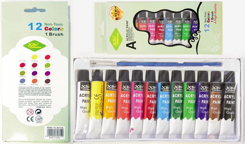 Σετ 12 ακρυλικά χρώματα ζωγραφικής 12ml με πινελάκι.