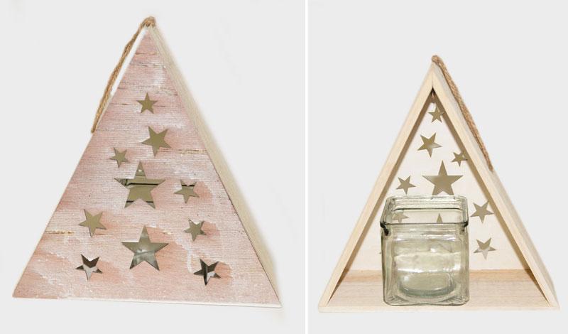 Φαναράκια, Κηροπήγεια και Μπάλες | Ξύλινο Κηροπήγειο πυραμίδα μεγάλη με σχέδιο αστέρια (0619033)