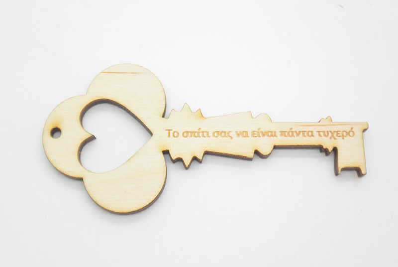 Ξύλινo Διακοσμητικό κλειδί με ευχή το σπίτι σας να είναι πάντα τυχερό. Διάσταση 10 x 4.8 cm.