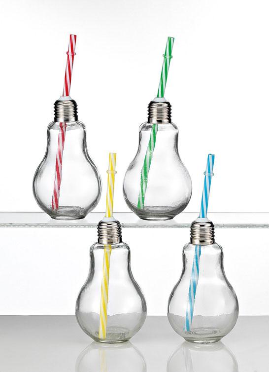Μπουκαλάκι με καλαμάκι με σχέδιο λάμπα σε διάφορες αποχρώσεις. Διάσταση 8 x 13 cm.