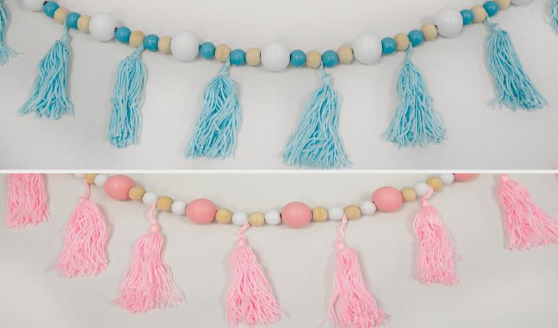 Βάπτιση και Γάμος | Γιρλάντα με ξύλινες χάντρες και φούντες (0519624)
