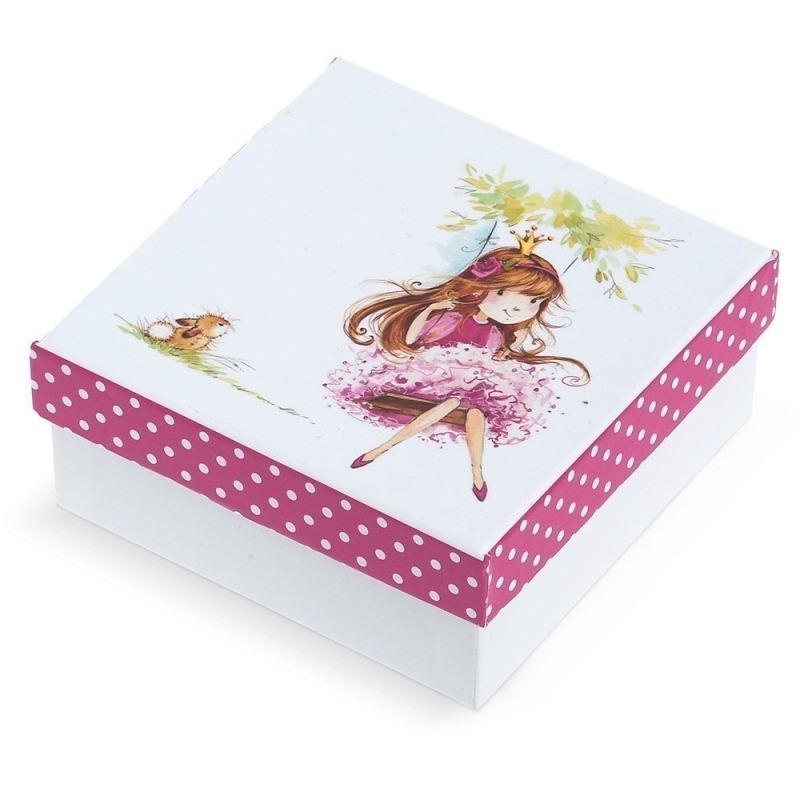 Χάρτινο λευκό κουτί με αποσπώμενο χάρτινο καπάκι. Print με παράσταση princess σε αποχρώσεις του φούξια.