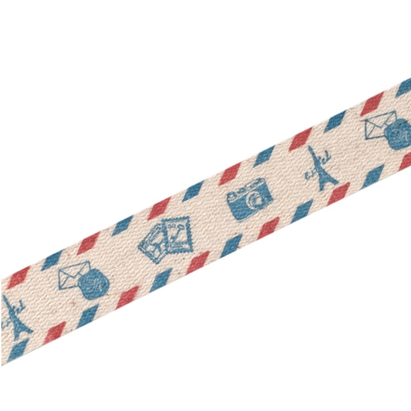 Κορδέλα βαμβακερή εκρού print με γραμματόσημα