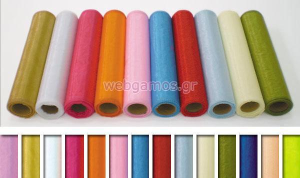 Ράνερ Ρολό οργάντζα ιδανικό για διακόσμηση με διαστάσεις 28 εκ των 10 μετρων σε διάφορα χρώματα.