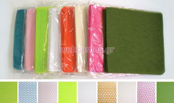 Τούλι Ελληνικό σε διάσταση 44 x 44 cm σε διάφορες αποχρώσεις. Το πακέτο περιέχει 100 τεμάχια.