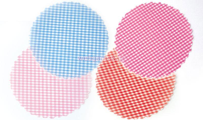 Πανάκι Καρό 12 εκ για στολισμό σε βαζάκια με γλυκό. Συσκευασία 100 τεμαχίων.