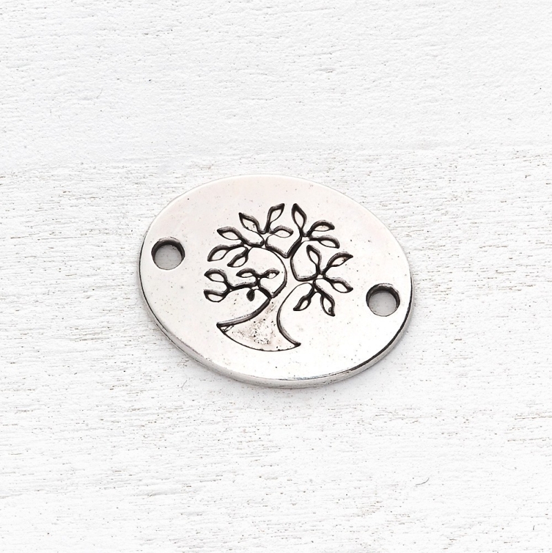 Μεταλλικό κρεμαστό διακοσμητικό οβάλ δέντρο σε χρώμα ασημί με 2 τρύπες. Κατάλληλο για διακοσμήσεις και χειροποίητες κατασκευές. Η συσκευασία περιέχει 10 τεμάχια.